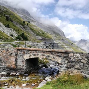 The Col du Galibier (2642m) ascent from Valloire. 17.6km of glorious views with an average 6.8% incline. Professional riders can reach the top in under an hour but expect it to take up to 2. It is typical on a Ciclo Magic cycling holiday to summit the south side of the Galibier in the morning, descend to Valloire for lunch and then begin this climb. This means good pacing and sufficient fuelling are super important. Respect this climb, you will need that extra gas to negotiate the final few steeper kilometres at altitude.